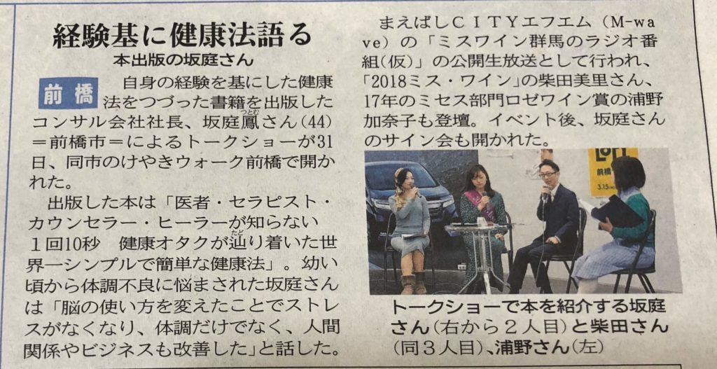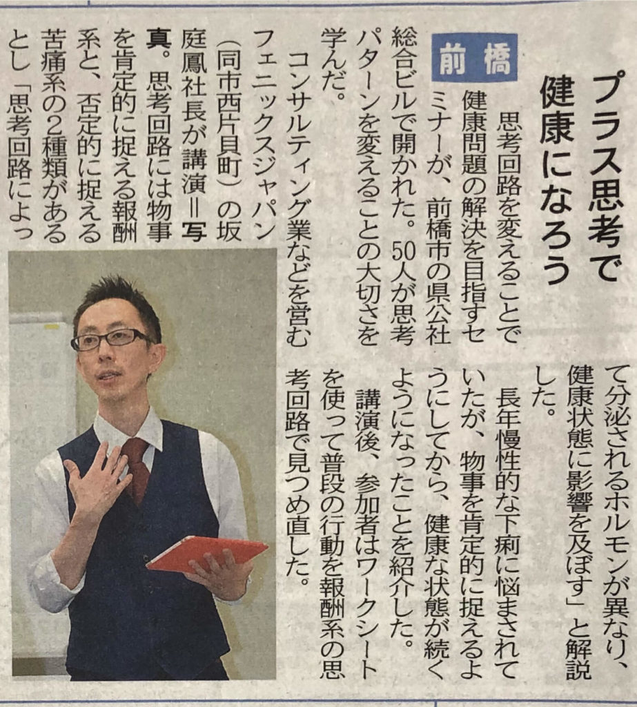 上毛新聞掲載 プラス思考で健康になろう