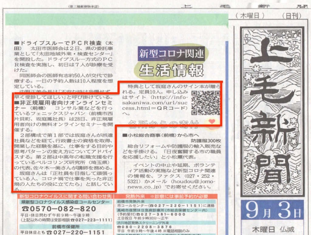 コロナ禍で解雇された非正規雇用の方への支援セミナーが上毛新聞に紹介されました
